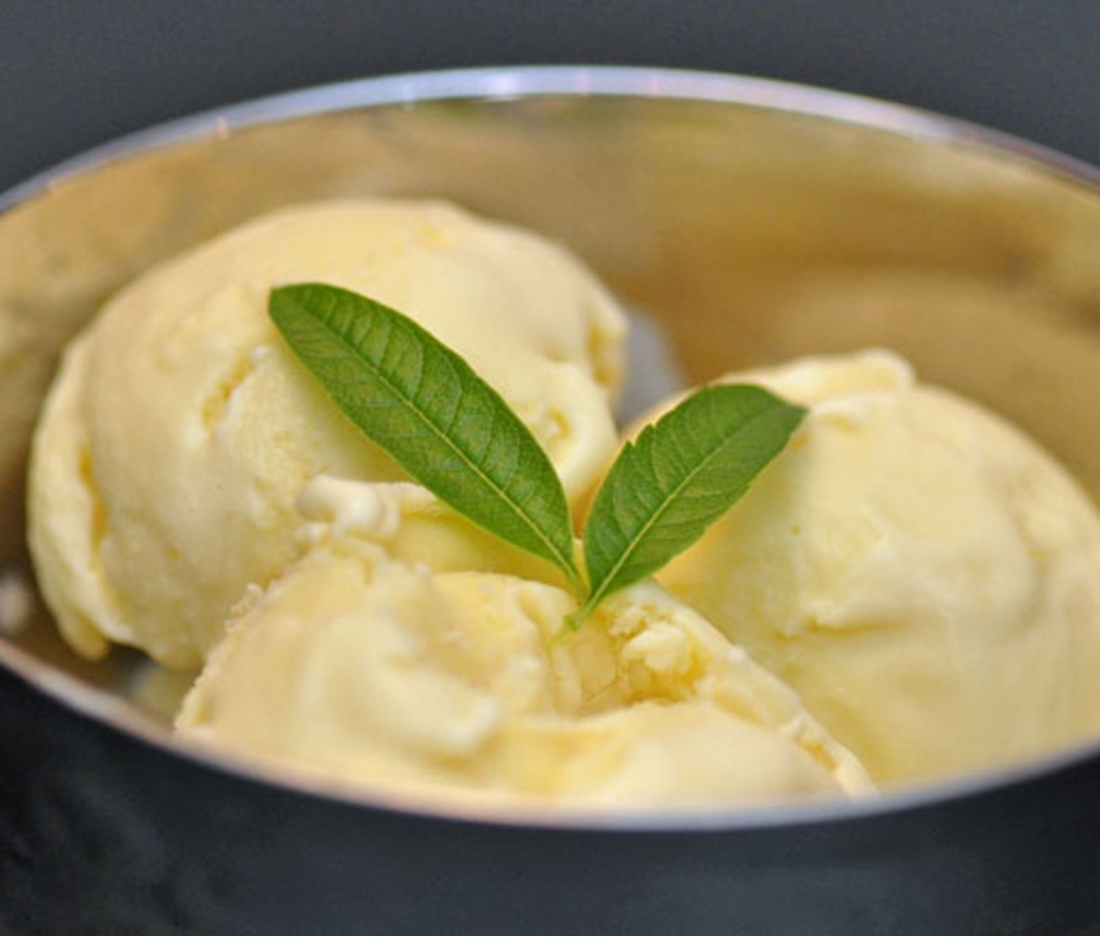 Lemon verbena’s sharp lemon scent makes this ice cream a crisp and refreshing treat for a hot summer evening. Chef Ben Batterbury serves it with his strawberry pavlova with saffron custard.