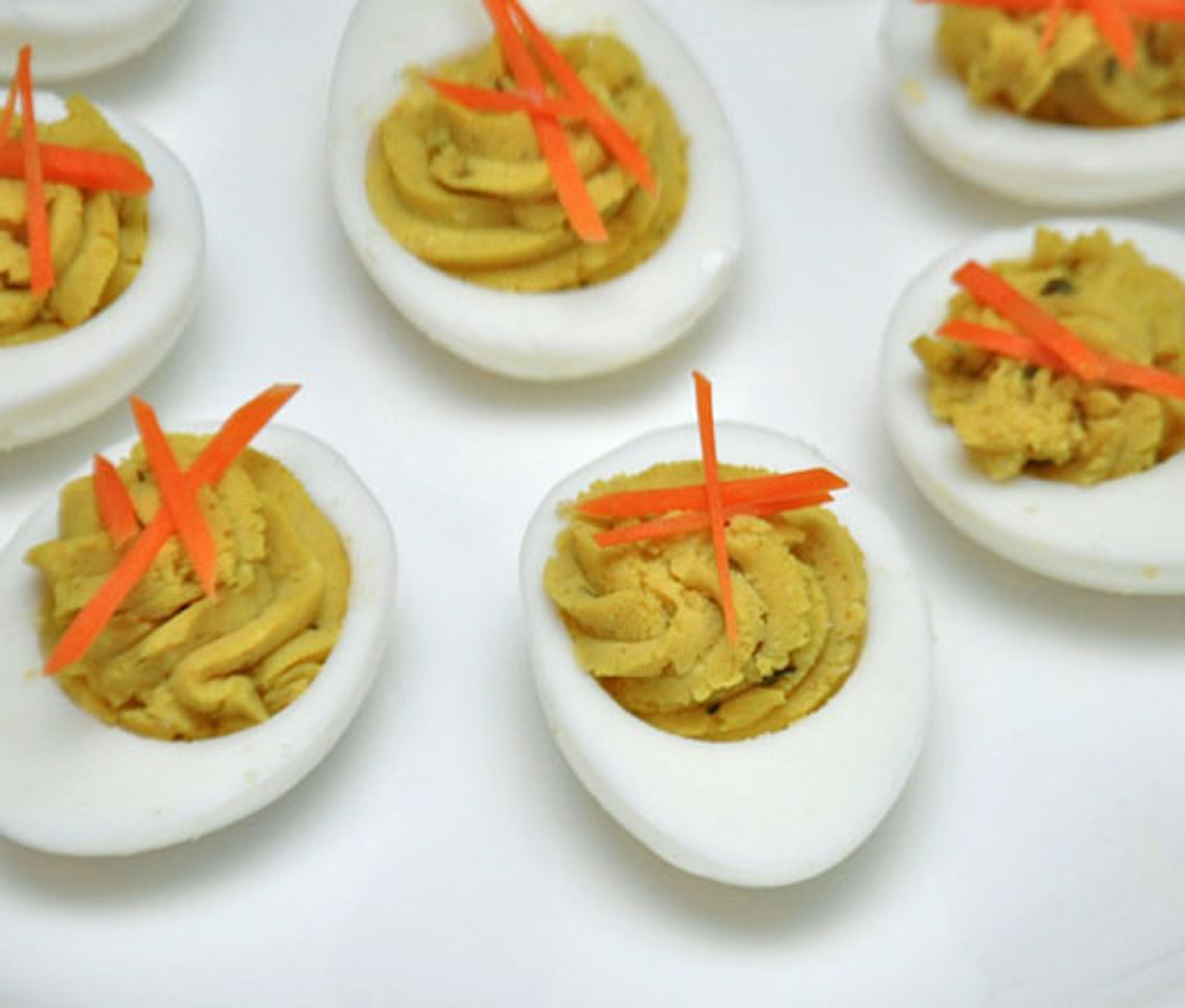 For their 2011 New Year's Eve celebrations, the JBF editors chose recipes from James Beard's classic entertaining cookbook, Hors d’Oeuvre and Canapés, and gave them a modern spin. Here, Beard's curried deviled eggs get a stylish update with vadouvan, a masala-like, French-Indian spice.