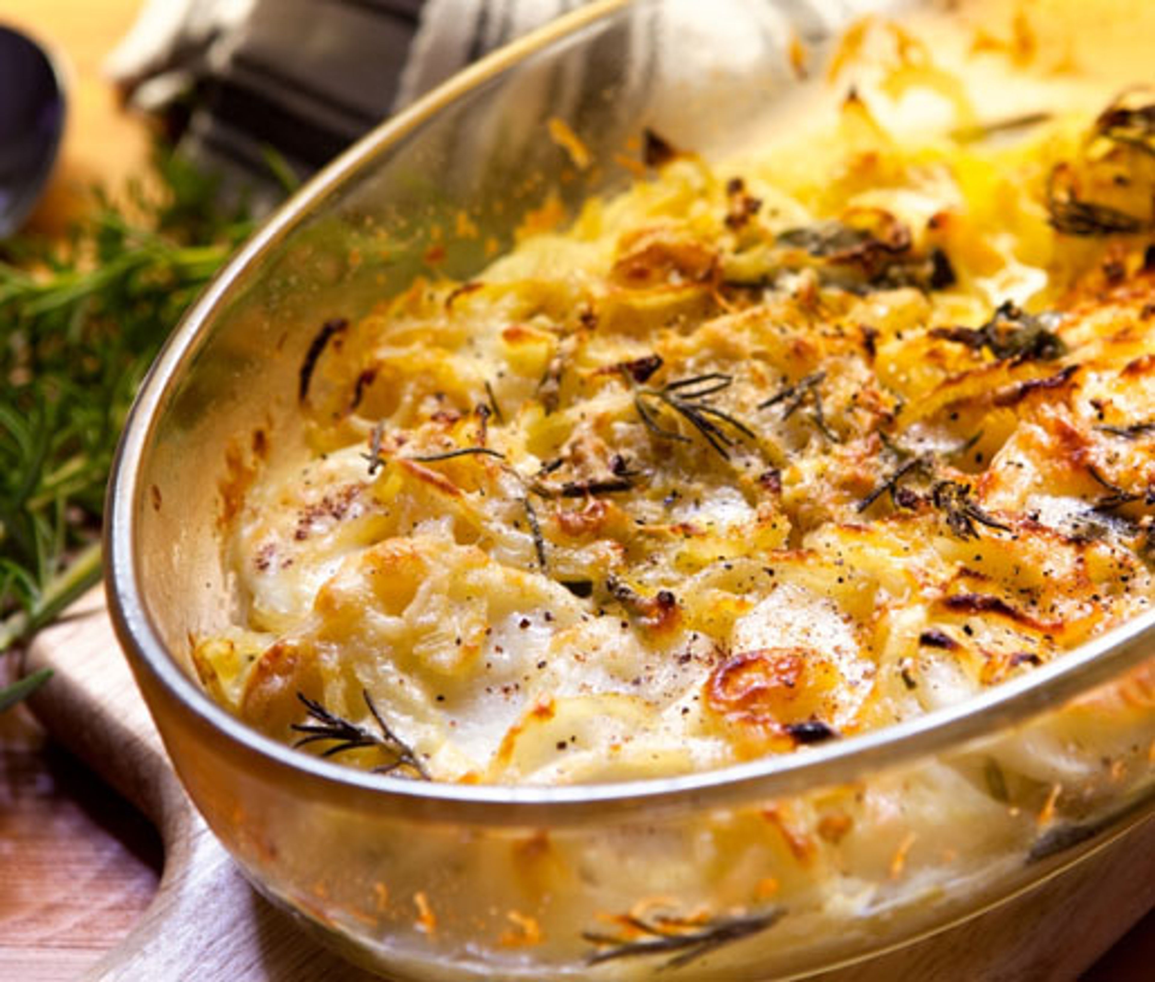 After you take the gratin out of the oven, let it rest for 10 to 15 minutes before cutting. Run a knife around the sides of the pan to loosen the gratin, cut it into four servings, and remove the slices with a spatula.