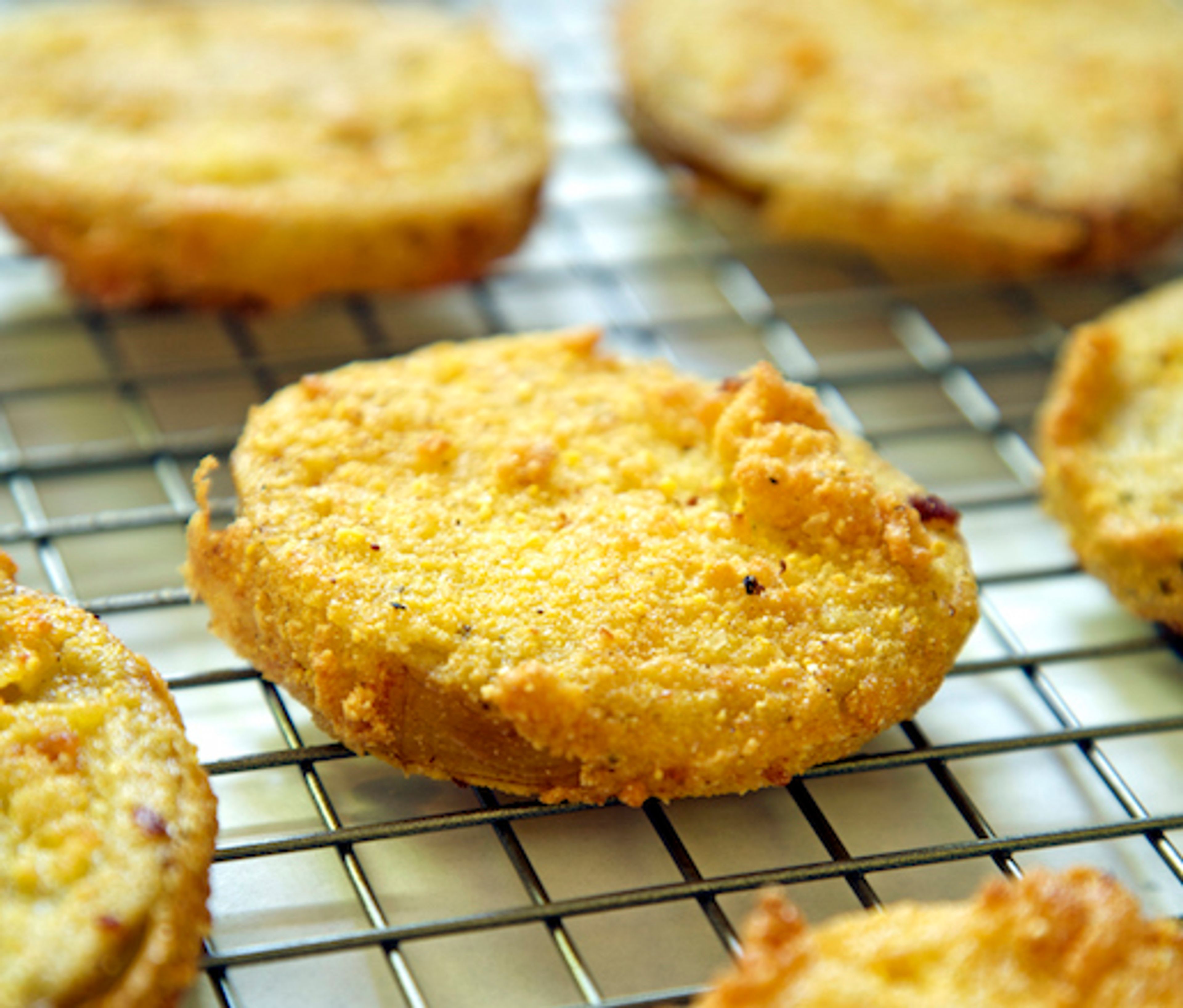 Heat 1/2 inch of vegetable oil to 350ºF in a medium cast-iron skillet. Fry the tomatoes until golden on both sides.
