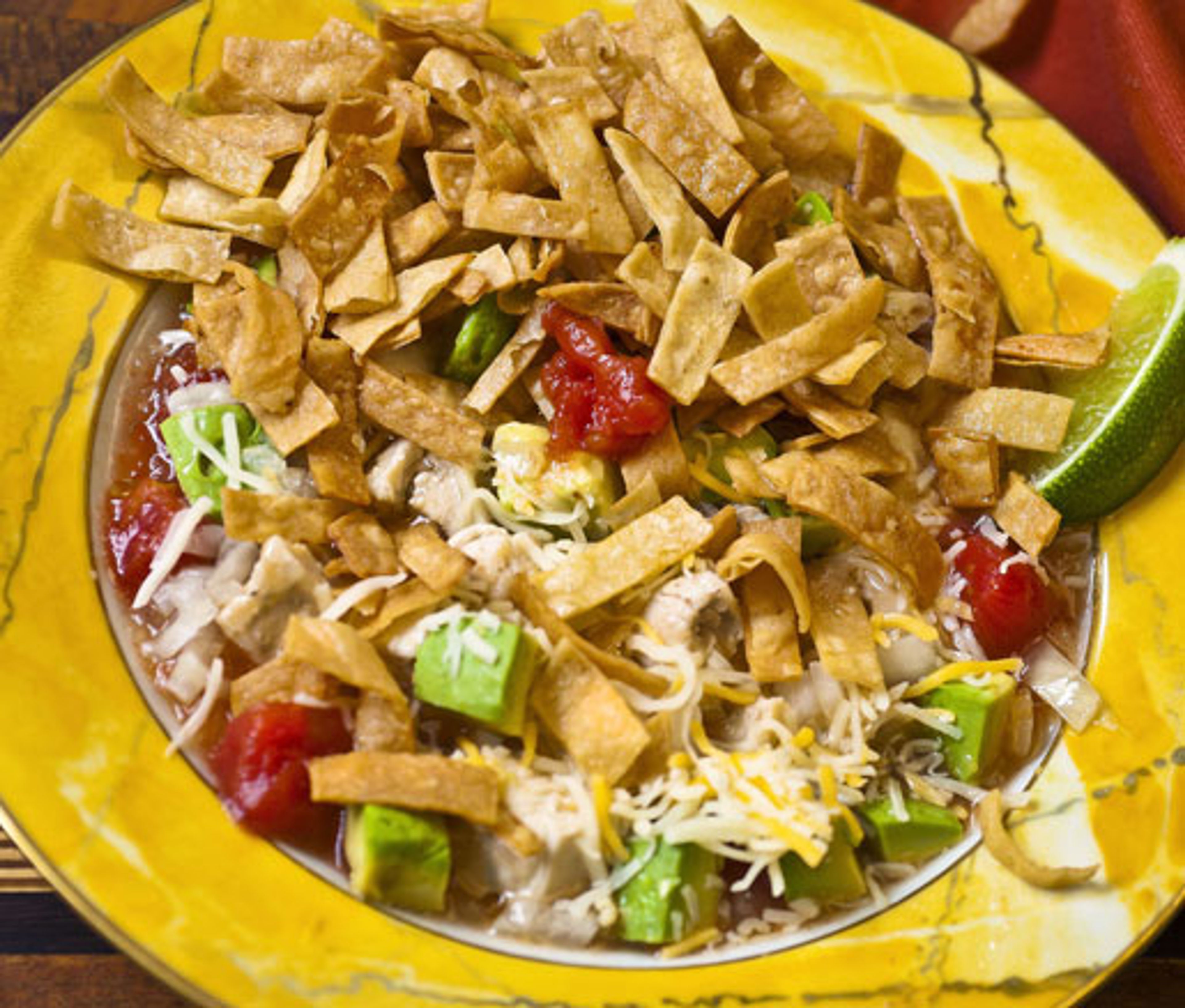 A purée of tomatoes, onions, garlic, and pasilla chile, cooked down to an intensely flavorful paste, provides the foundation for this delicious tortilla soup.