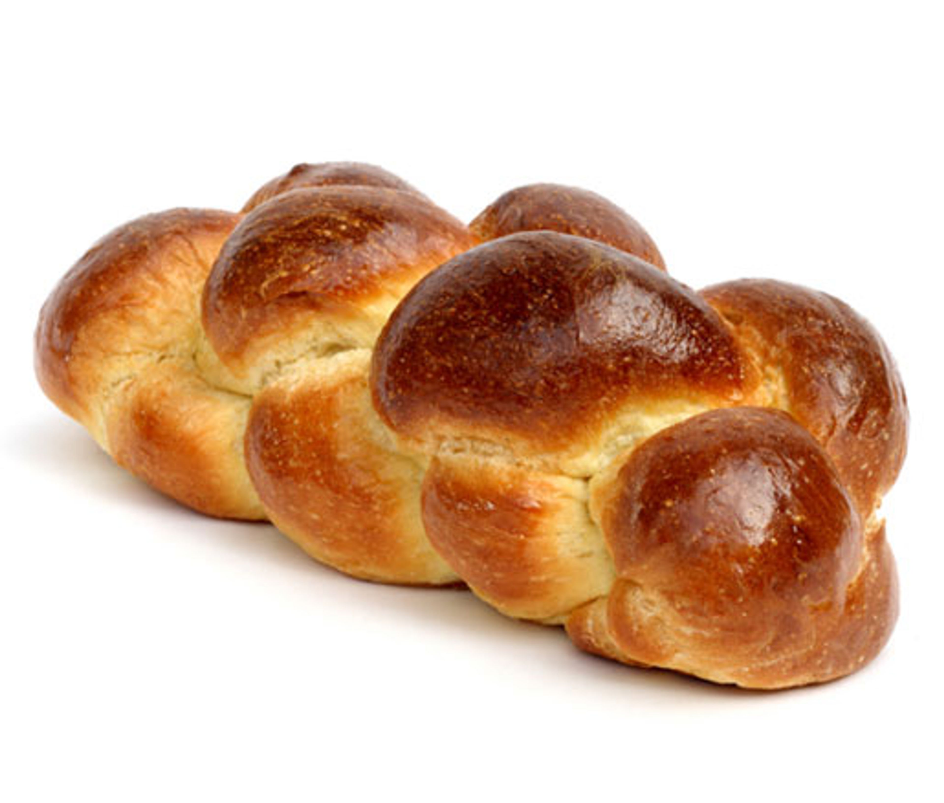 Place the dough in an oiled bowl and turn to coat with oil. Cover with plastic wrap and then a tea towel. Set in a warm place to rise. Let rise until doubled, about one hour. Punch the dough down and divide in half. Divide each half into three (or four) strands and roll into long ropes. Braid strands together. Place in oiled loaf pans or on baking sheets lined with parchment paper. Cover loosely with oiled plastic wrap and let rise one hour or until doubled. Brush the challahs gently with lightly beaten egg. Bake in a preheated 350°F oven 25 to 30 minutes. Brush bread with egg wash twice during baking time. Reduce oven temperature if bread is browning too much. A meat thermometer inserted into the bread should be 190°F.
