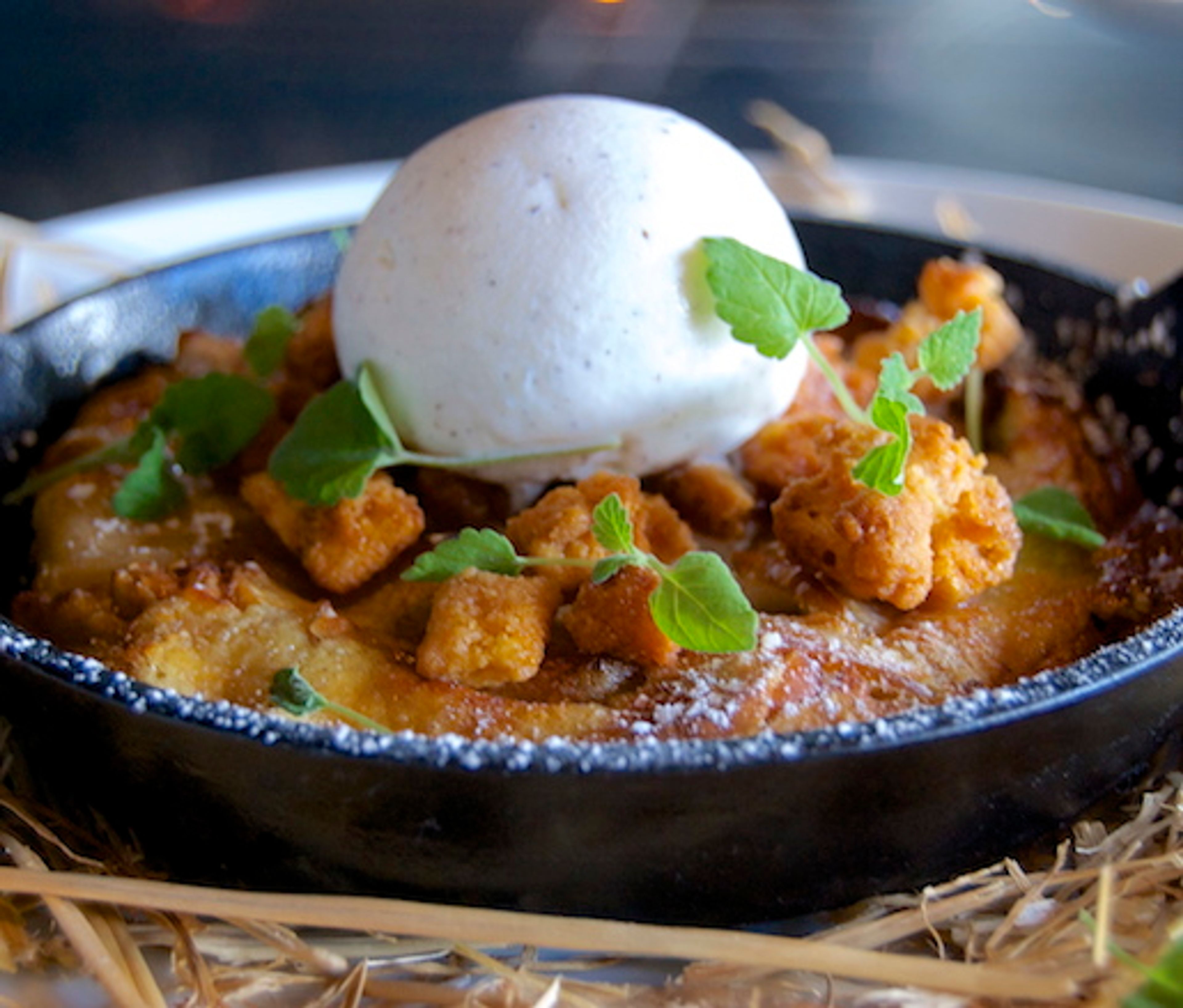 Bake until golden brown and the middle of the clafoutis jiggles when gently shaken, about 30 minutes. Cut into slices and serve with ice cream.