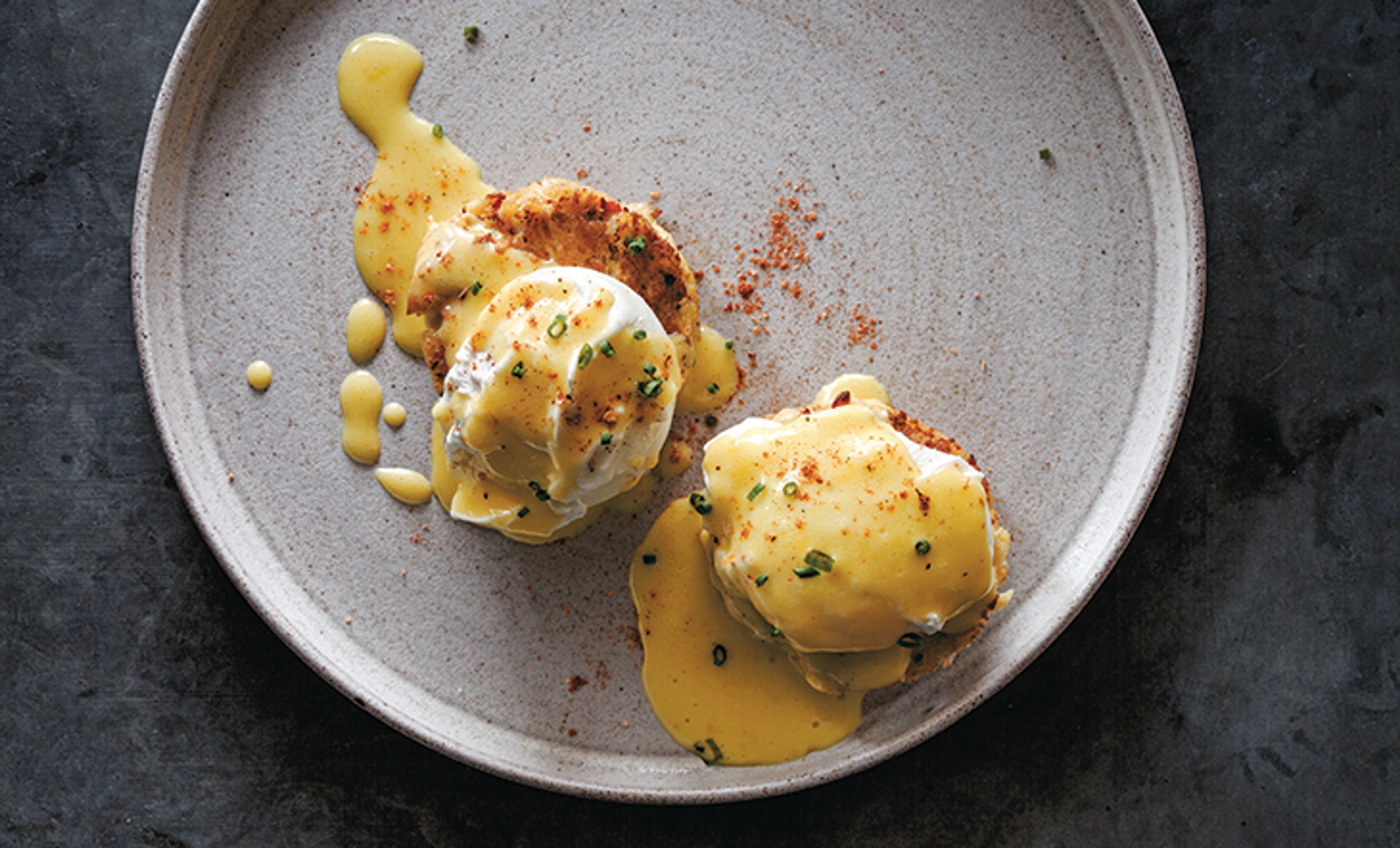 "I’m going to go ahead and say it: New Orleans doesn’t do a very good version of the crabcake (for the most part). We make them, however, nonetheless. In New Orleans, we lean too much on bread crumbs as a binder and bell pepper and onion as filler, so the crab part of the cake frequently gets lost. In my best estimation, it’s a version of the stuffed crab, just without a shell. The Big Bad Breakfast crabcakes are unapologetically more in the bready, New Orleans style. My justification is that cooking them this way makes a fantastic base for a Benedict, with the cake becoming a crabby English muffin substitute, topped with a poached egg."—John Currence