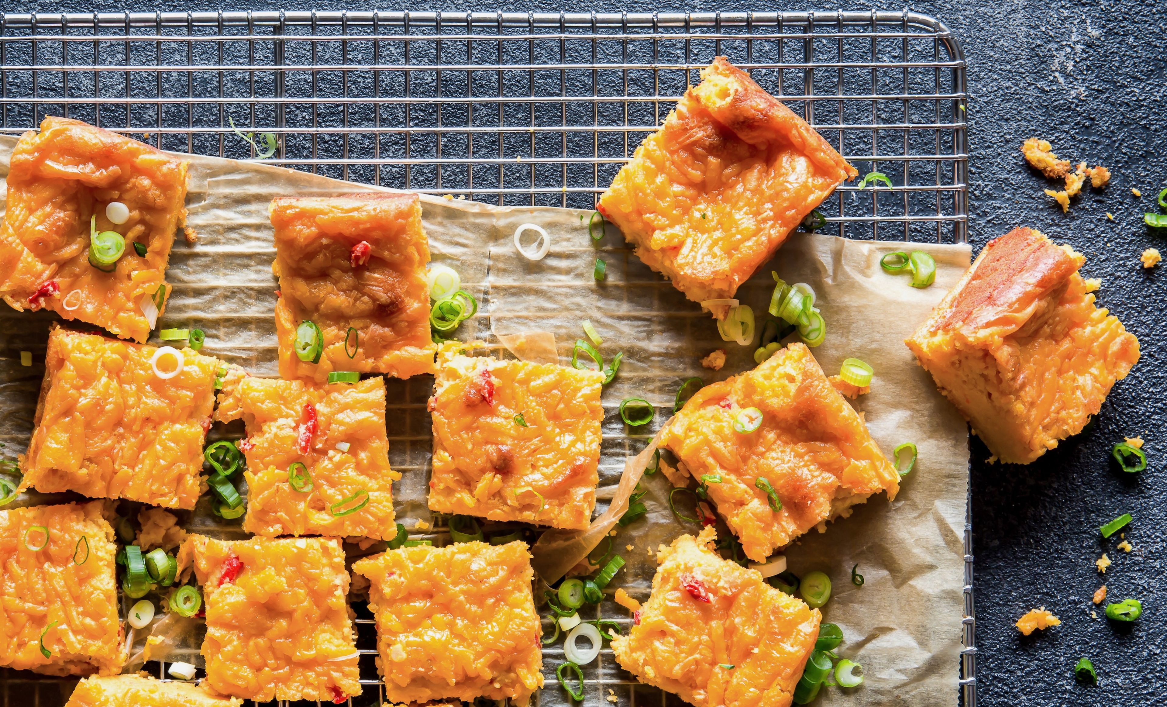 Remove from the oven to cool. Garnish with the chopped green onions. Serve warm or at room temperature.