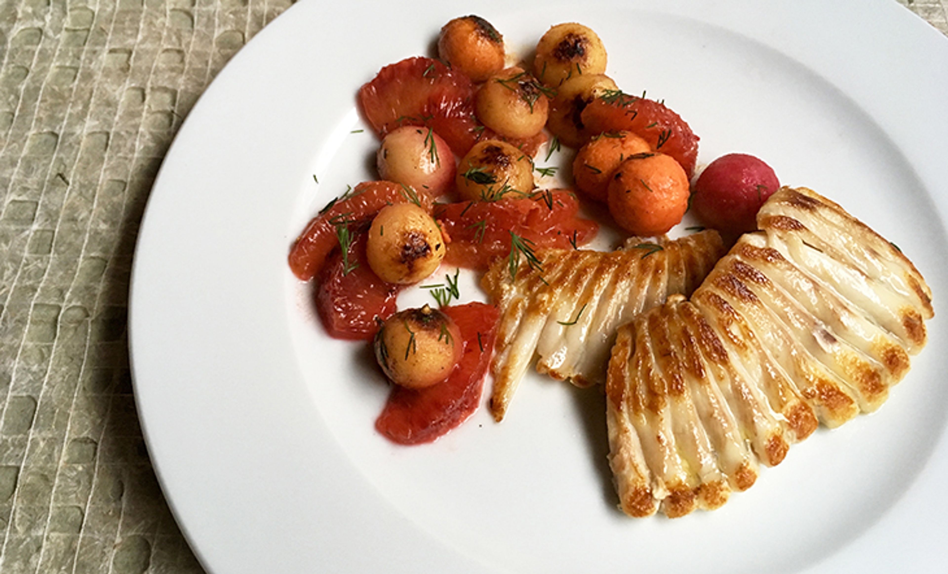 Sautéed Skate with Root Vegetables and Blood Oranges