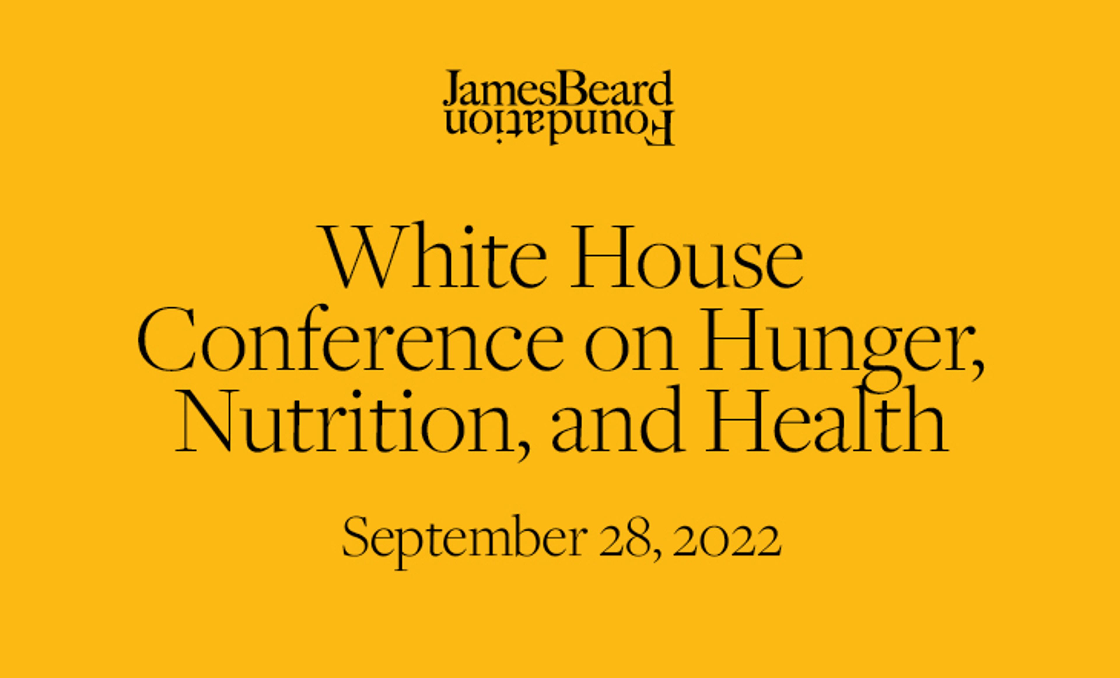 Yellow background with black text that includes the James Beard Foundation logo and reads White House Conference on Hunger, Nutrition, and Health, September 28, 2022 below