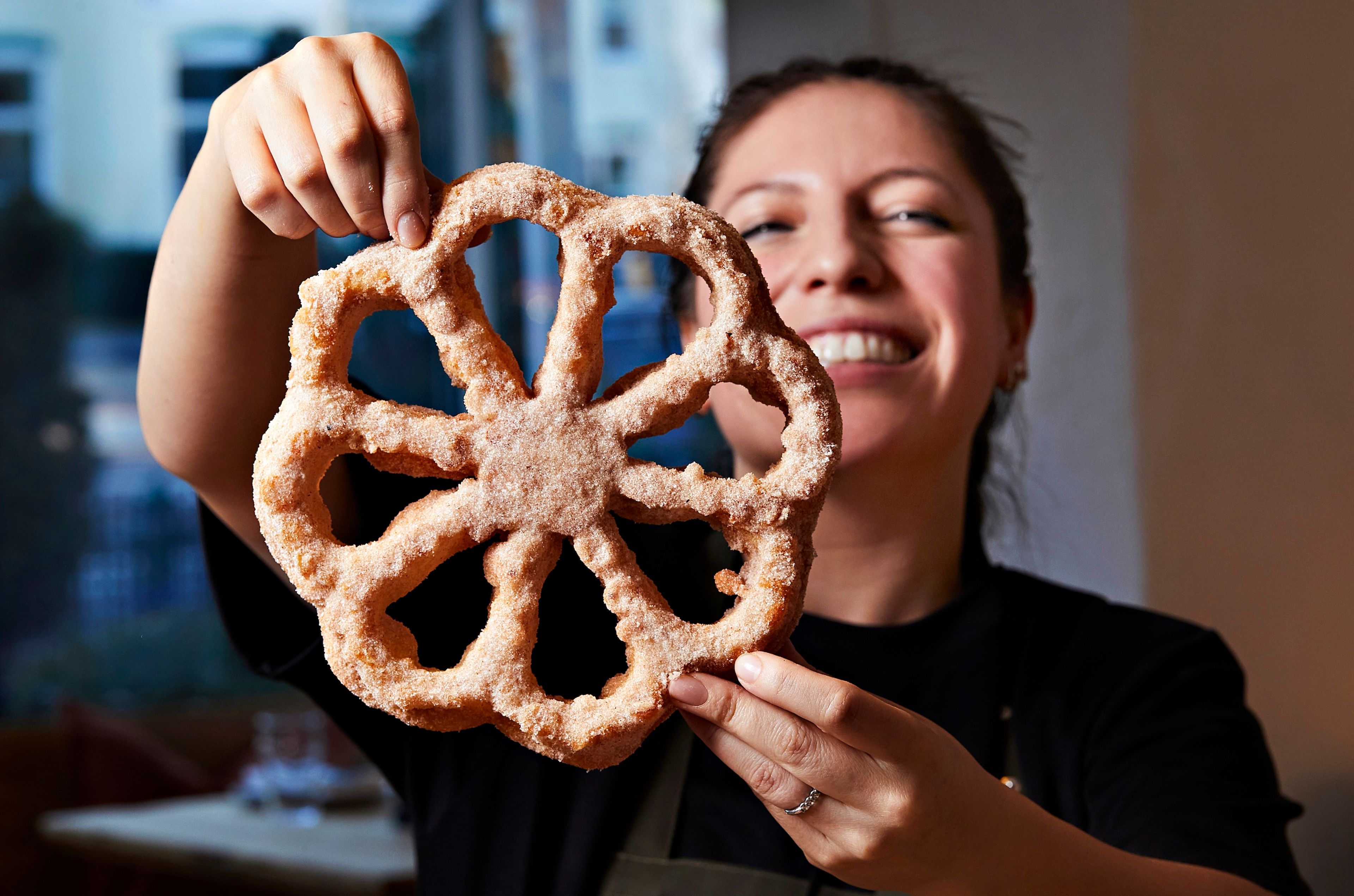 Chef Isabel holding a signature buñuelo. (Photo: Deb Lindsey)
