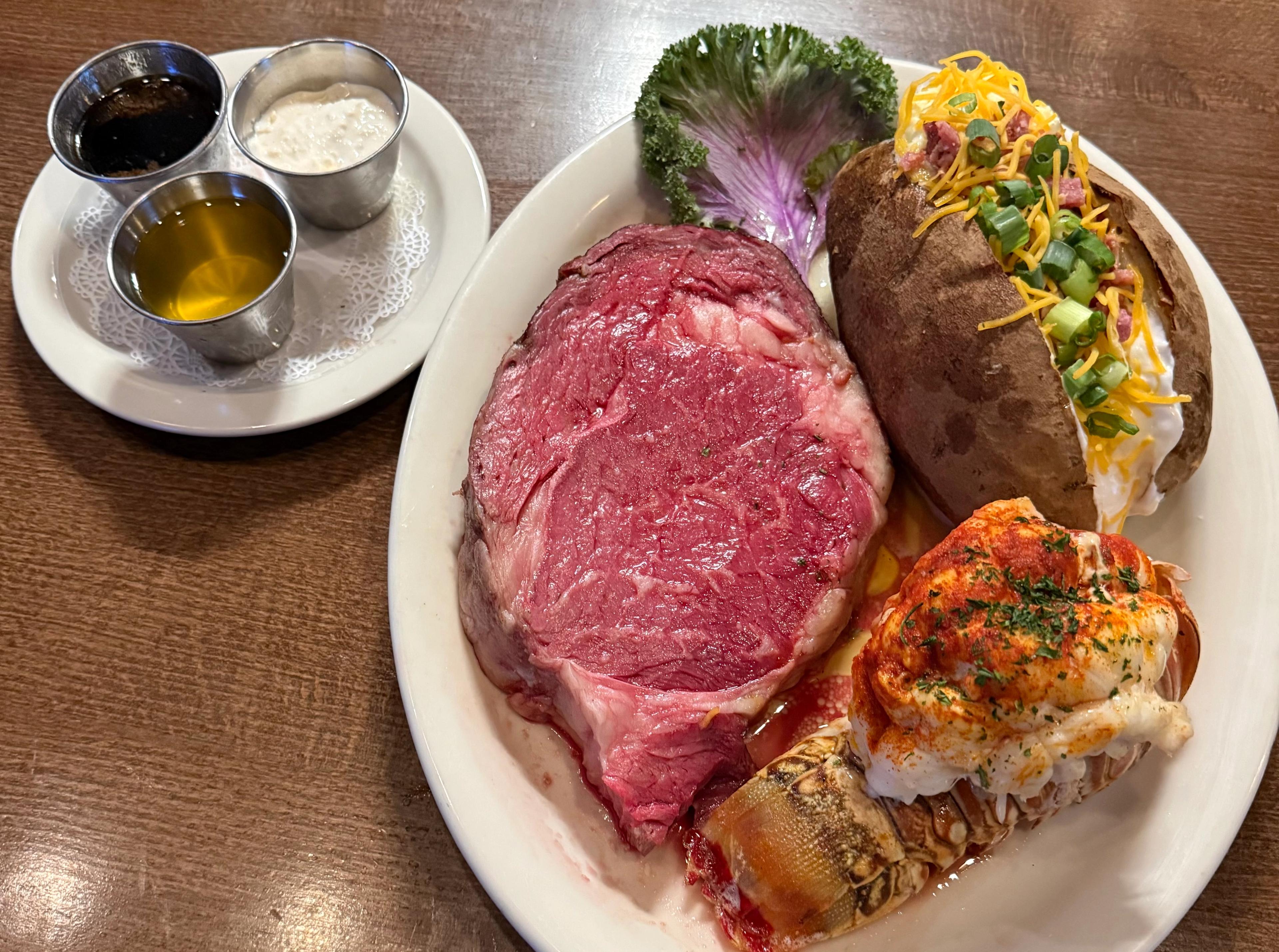 Today, Bob Taylor’s Ranch House still feels like a time capsule of that philosophy. It’s widely regarded as the oldest operating steakhouse in Las Vegas, and its dining room, hung with Western and Hollywood memorabilia, feels lived-in and loved rather than staged. The menu stays true to its roots: thick, mesquite-grilled steaks, slow-smoked prime rib, classic seafood starters like shrimp scampi and crab-stuffed mushrooms, and hearty mains. It’s not chasing trends—it’s preserving a way of cooking and eating that’s tactile, real, and rooted in a man’s belief that steak was best served hot off the fire.