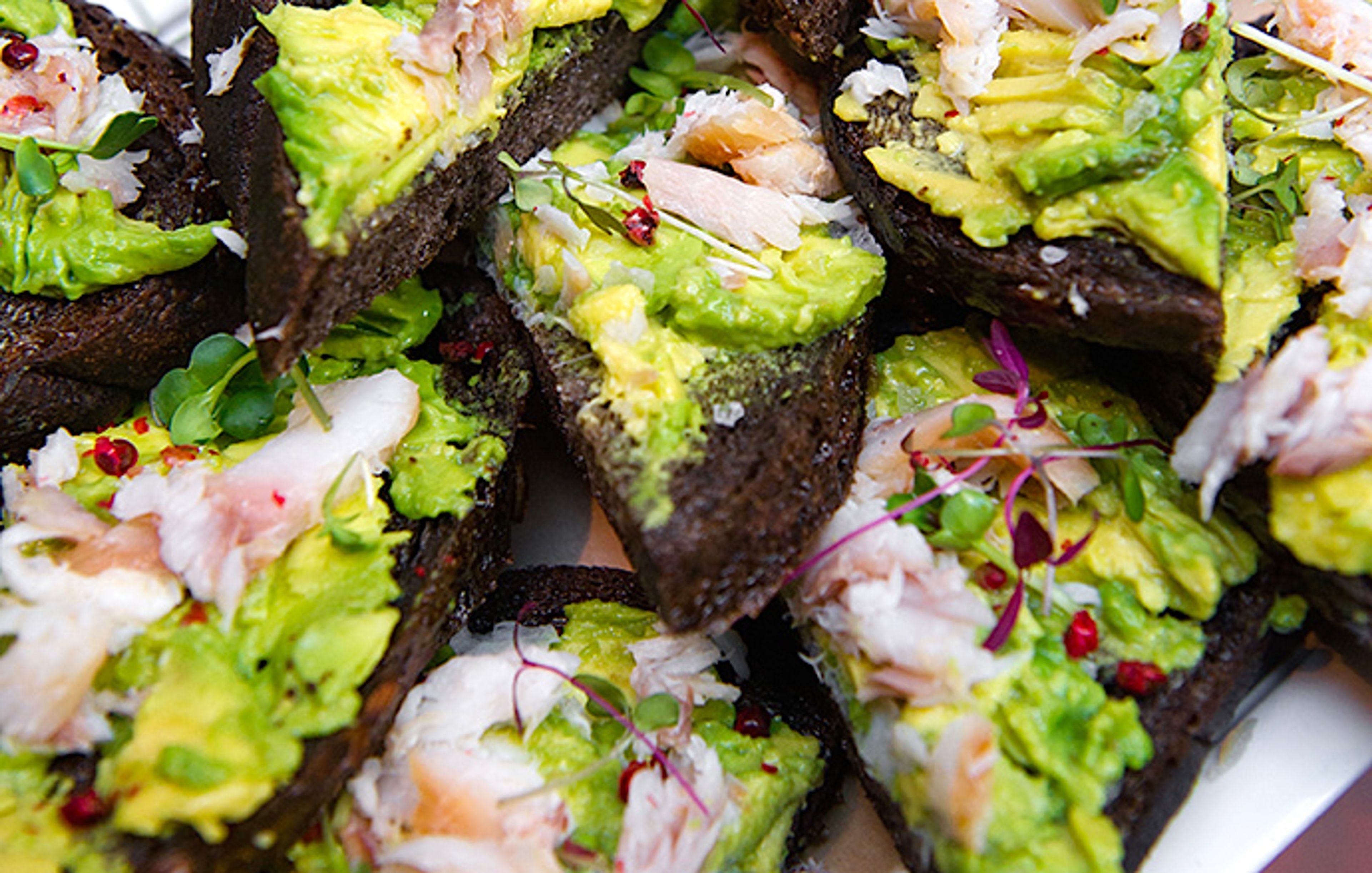 Avocado with Toasted Pumpernickel, Smoked Whitefish, and Pink Peppercorns