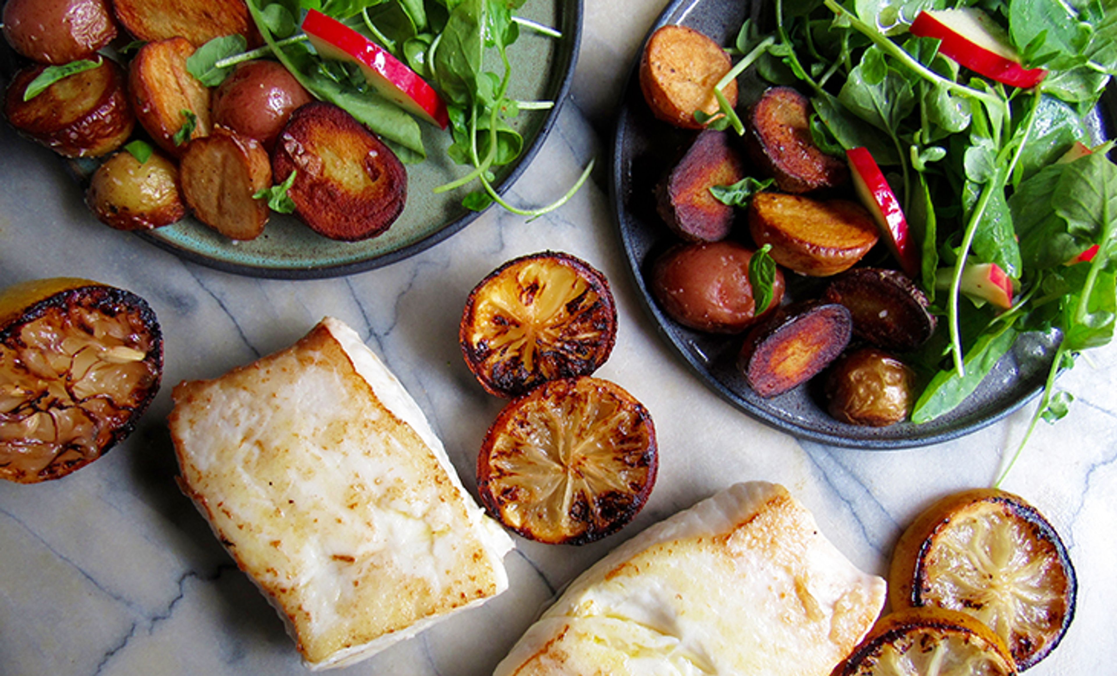 At this frosty time of year, you might be on a repeat loop of hearty stews and braises—but with all the holiday indulgence going on, yet another heavy meal can feel like a drag. Need a break? We love this recipe from Chefs Boot Camp alum Matthew Dolan, where simply seared halibut filets (sustainable if sourced from the Pacific northwest) are paired with fingerling potatoes, apples, and a flavorful sauce featuring charred lemons, mustard, and thyme.