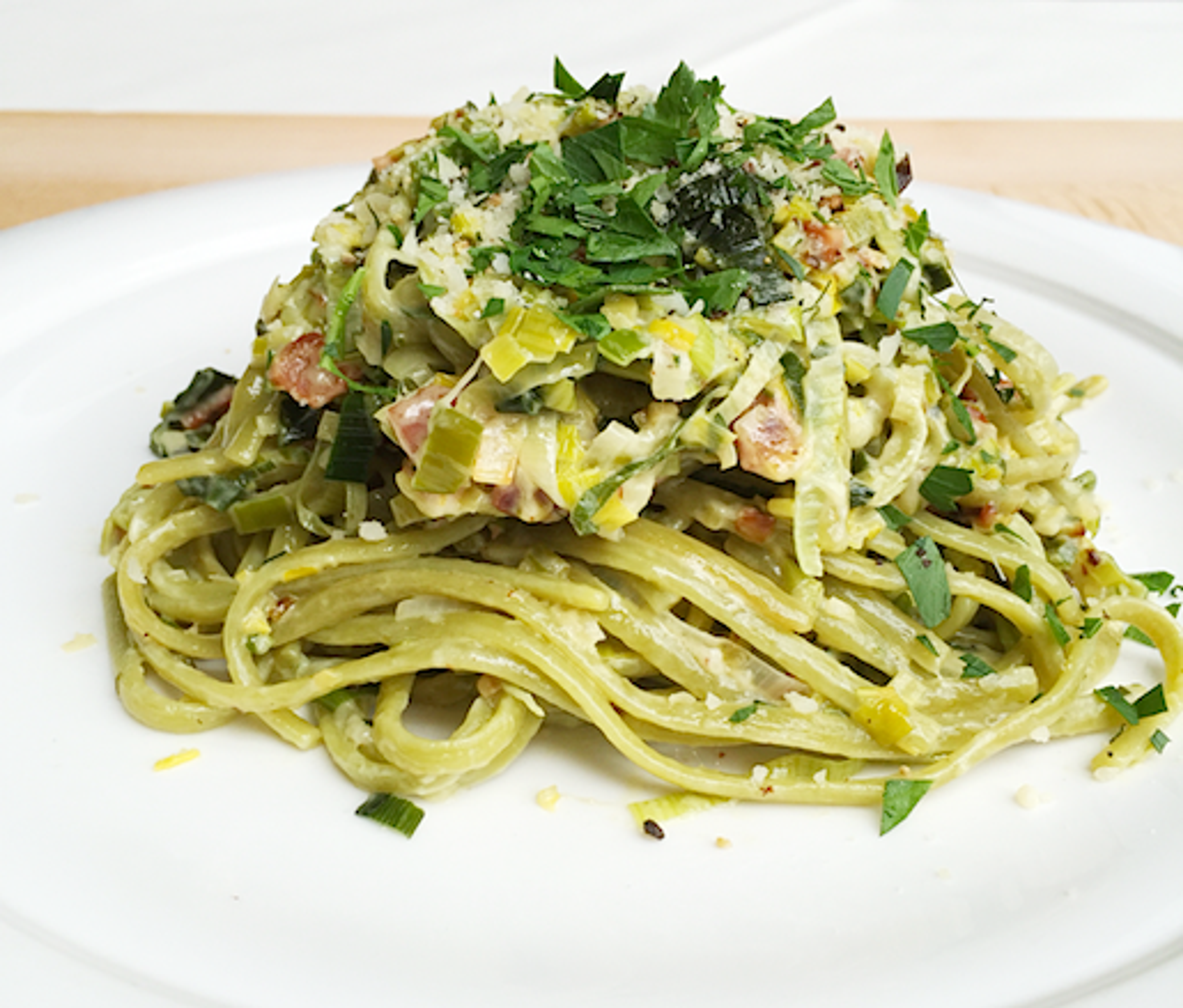 Are you craving a delicious and indulgent pasta that's easy to throw together after a long day at work? We certainly are (when aren't we?)—and James Beard's recipe for Linguine Verdi al Guanciale offers exactly that: a vibrant, flavor-forward dish with golden-brown leeks, crispy guanciale (a.k.a. cured pork jowl) or pancetta, and just the right amount of cream. Finished with some nutty Parmesan cheese and fresh, bright Italian parsley, this deeply satisfying dish is swiftly becoming our go-to weeknight dinner. Watch the step-by-step video below, as senior editor Elena North-Kelly demonstrates how to make pasta that your nonna would be proud of.