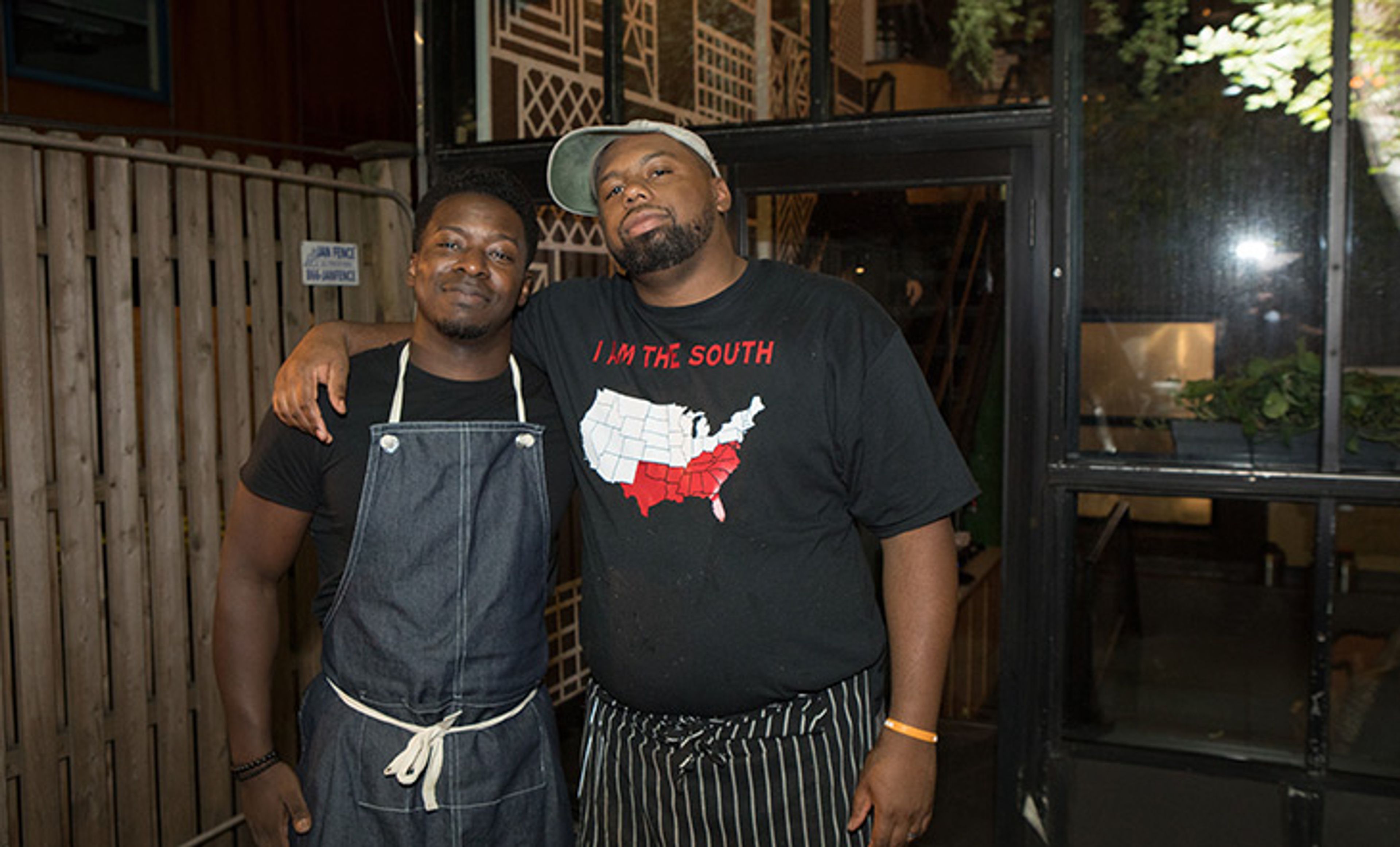 Justin Hazelton (left) and Greg Collier (right) at the Soul Food Sessions dinner at the Beard House (photo: Clay Williams)